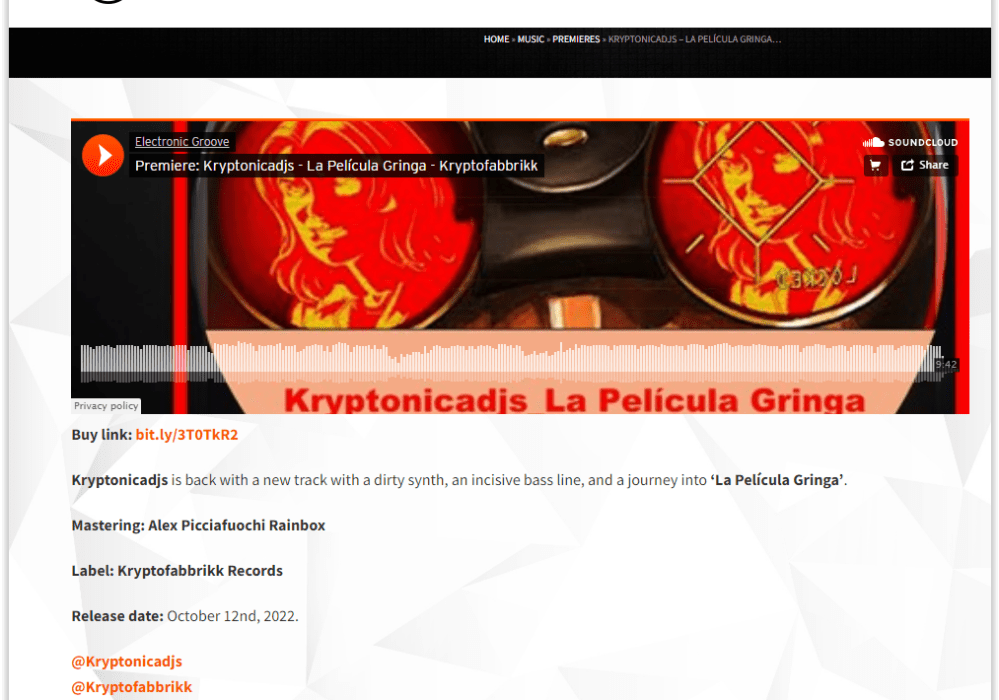 Kryptonicadjs is back with a new track with a dirty synth, an incisive bass line, and a journey into ‘La Película Gringa’.
