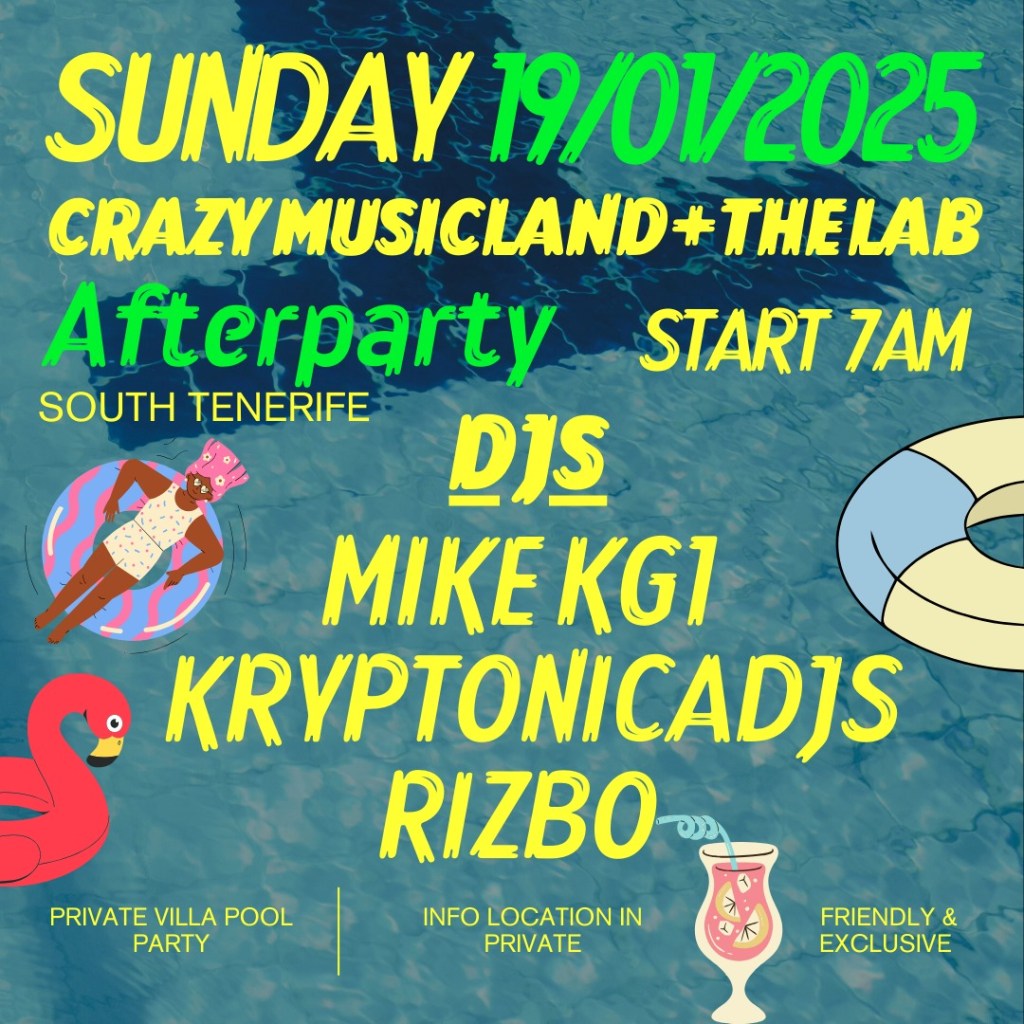 Sunday morning 19/01/24 from 7 am till late, AFTERHOUR and POOL PARTY in a super deluxe villa in South Tenerife